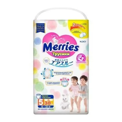 Подгузники-трусики Merries XL 12-22 кг, 38 шт