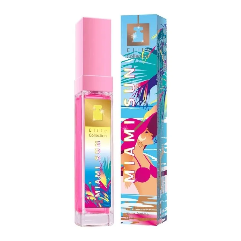 Солнечный и яркий аромат Elite Collection Miami Sun окунет с головой в вечное лето, солнце и тепло! Аромат соткан из цитрусовых аккордов и свеже сладких нот спелого арбуза на мягкой базе амбры и пралине. Начальные ноты: цитрусы, груша. Ноты сердца: арбуз, акватические ноты. Ноты шлейфа: амбра, пралине. Туалетная вода с сочным фруктовым звучанием. Духи для молодых и ярких, женственных и позитивных девушек, девочек, женщин. Парфюмерия на каждый день, которую удобно взять с собой.
