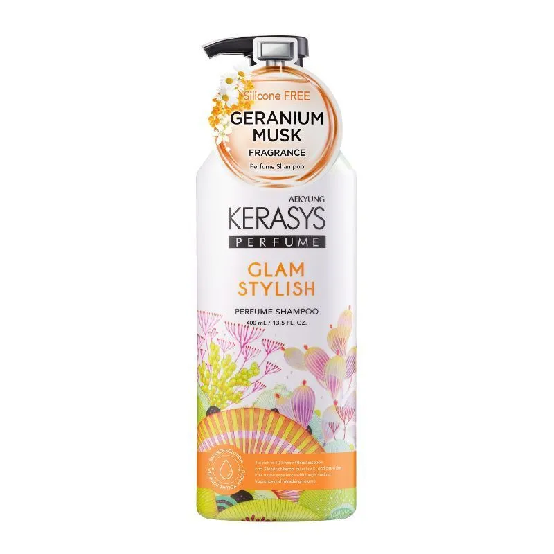 Парфюмированный шампунь «Очарование и элегантность» Kerasys Glam & Stylish Perfumed Shampoo нежно и деликатно очищает волосы, не повреждая их структуру и придавая им эластичность и упругость, питая и наполняя жизненной энергией. При регулярном использовании шампуня волосы становятся заметно более сильными, плотными, шелковистыми и сияющими. Нежный аромат цветов сохраняется на волосах в течение всего дня.