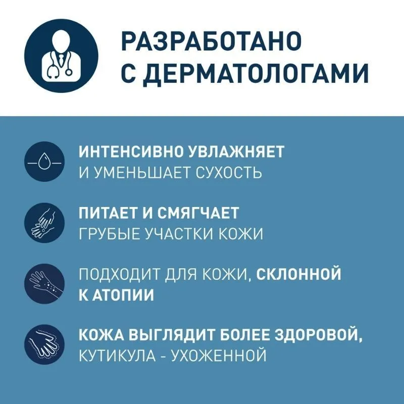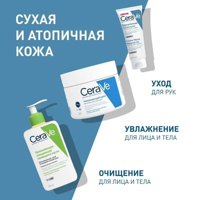 CeraVe Крем для рук с нежирной формулой интенсивно увлажняет сухую кожу рук, способствуя восстановлению и укреплению защитного барьера кожи. Гиалуроновая кислота и технология MVE позволяют поддерживать естественный уровень увлажнения кожи в течение долгого времени.