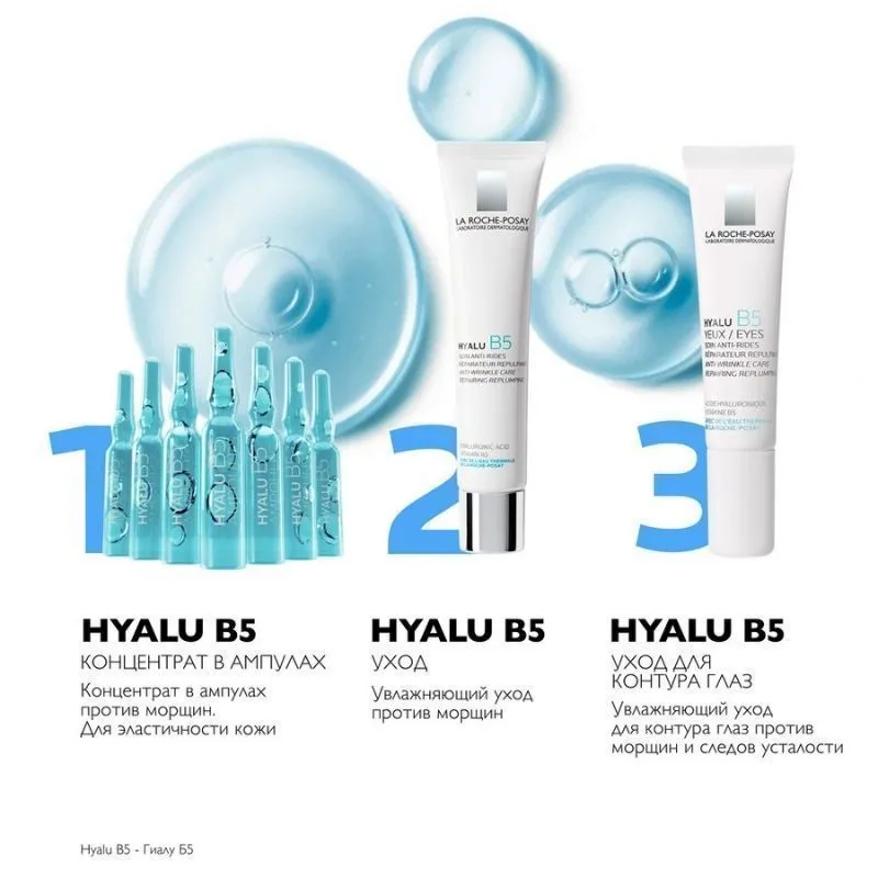 Показания: Морщины, потеря упругости и эластичности Инновация: Увлажняющая и восстанавливающая формула с двумя видами чистой гиалуроновой кислоты (низкомолекулярной и высокомолекулярной) в эффективной концентрации и Витамином B5. Возвращает тонус и упругость, восполняя гидролипидный баланс кожи. Комплекс гиалуроновой кислоты обеспечивает интенсивное увлажнение кожи, повышение тонуса и эластичности. Витамин B5 успокаивает и ускоряет процессы восстановления кожного барьера. Подходит для всех типов кожи. Бренд входит в дивизион активной косметики международной Группы LʼOréal: La Roche-Posay (Ля Рош Позе), CeraVe (Цераве) и другие бренды.