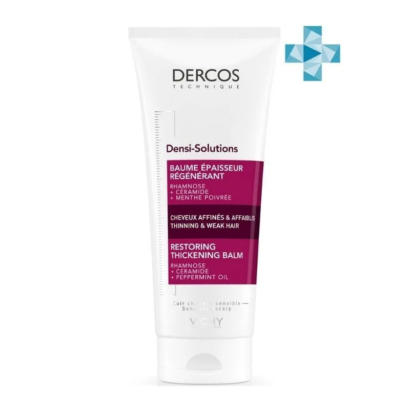Наши волосы хранят в себе следы негативных воздействий, которым они когда-либо подвергались. Качество волос страдает как от внешних факторов горячей укладки, ультрафиолета, холода или неправильного ухода, так и от внутренних изменений стресса, гормональных колебаний. Все это может привести к нарушению структуры волокна волоса, переходу части фолликулов в фазу покоя. Стержни волос истончаются, становятся менее прочными и упругими, в результате, прическа теряет объем и густоту. Верните лучшее время Ваших волос с DERCOS DENSI-SOLUTIONS. Волосы более густые, плотные и крепкие. Эксперты Лабораторий VICHY разработали инновационную гамму средств по уходу за волосами, которая комплексно борется со всеми аспектами проблемы истончения волос. Сыворотка увеличивает количество волос, шампунь повышает плотность, а бальзам восстанавливает структуру волос. Уплотняющий бальзам Dercos Densi-Solutions увеличивает массу волос. Он укрепляет и уплотняет волокно волоса с каждым применением, придавая волосам объем и здоровый вид.