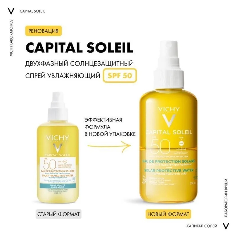 Солнцезащитный двухфазный спрей VICHY CAPITAL SOLEIL увлажняющий SPF 50, 200 мл