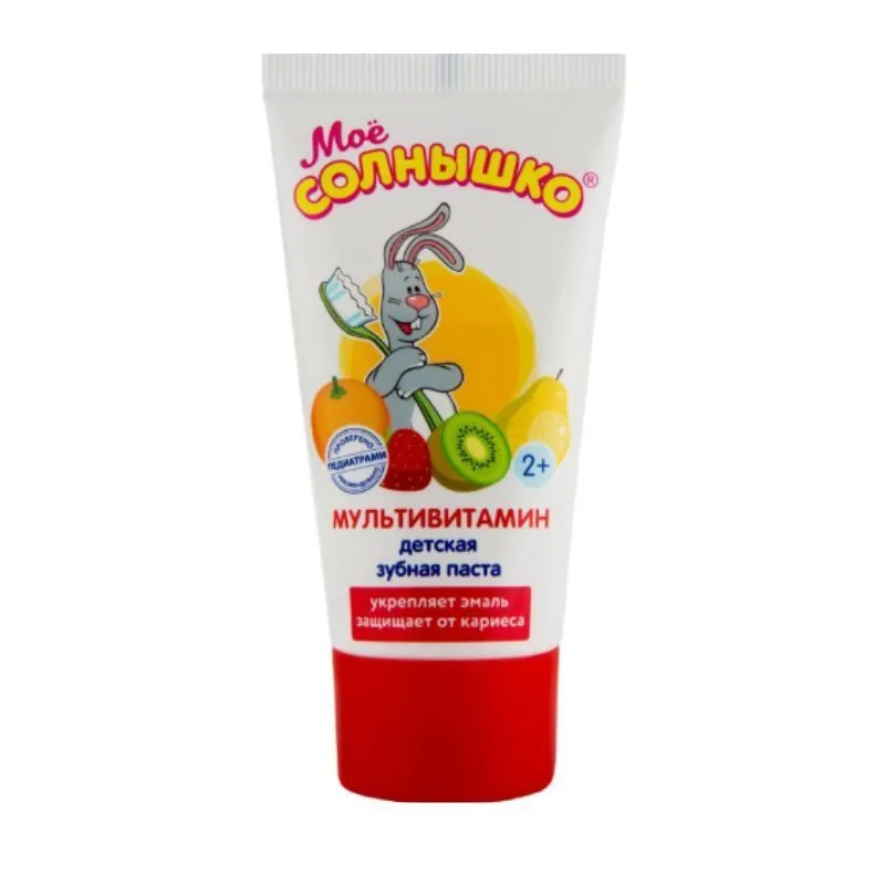 Паста зубная детская «Мильтивитамин» серии Мое солнышко подходит детям от 2-х лет. Бережное очищение молочных и постоянных зубов ребенка. Кальций и фтор способствуют укреплению зубной эмали и обеспечивают защиту от кариеса. Приятный аромат и вкус фруктов помогут ребенку сформировать привычку ежедневно чистить зубы. Без сахара. Паста безопасна для проглатывания. Без сахара. Клинически проверено и рекомендовано педиатрами.