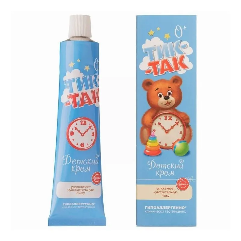 Детский крем "Тик-Так" предназначен для мягкого и бережного ухода за чувствительной кожей ребенка с первых дней жизни. Активные компоненты - экстракты калины, чабреца, тысячелистника, L-каротин и смягчающие натуральные компоненты - эффективно питают, увлажняют и успокаивают раздраженную кожу, предотвращают ее сухость и шелушение.