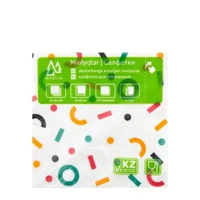 Салфетки бумажные трехслойные MAOLIN с тиснением и рисунком, 33×33 см, 20 шт