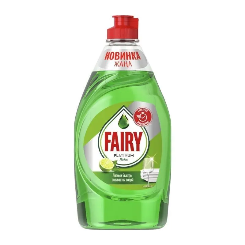 Средство для мытья посуды Fairy из линейки Platinum «Лайм» — ваш надежный помощник в борьбе против жира и других пищевых загрязнений. Концентрированное моющее средство для посуды справляется с жиром до 4 раз быстрее более дешевых жидкостей производства P&G. Приятный аромат лайма сопровождает весь процесс мытья тарелок. Особенности геля для посуды «Фейри»: • ЭКОНОМИЯ ВРЕМЕНИ. Каждая капля геля-концентрата быстро расщепляет жир, экономя ваше время. • ОЧИЩЕНИЕ БЕЗ УСИЛИЙ. С помощью Fairy вы с легкостью отмоете даже самые грязные сковороды БЕЗ ЗАМАЧИВАНИЯ и соскабливания. • ПОЛНОСТЬЮ СМЫВАЕТСЯ водой. Мытье тарелок не должно отнимать ваше время, просто сполосните посуду после использования средства. • АРОМАТ ЛАЙМА. Гель безупречно очищает посуду, наполняя кухню цитрусовым запахом. • УНИВЕРСАЛЬНОСТЬ. Подходит для обработки фруктов, овощей, детских игрушек. Platinum — лучшая формула среди жидкостей Fairy. Объем пластиковой бутылки жидкости для мытья посуды Fairy Platinum с ароматом лайма — 430 мл. Упаковка сделана и