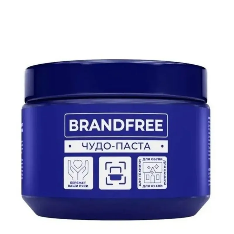 Универсальное моющее средство Brandfree - это чудо-паста для чистки любых металлических, эмалированных и стеклокерамических поверхностей, удаления налета в раковине, унитазе, ванне, очистки до блеска кафеля и загрязнений, мытья посуды и генеральной уборки всего дома. Универсальная очищающая паста предназначена для дома, дачи и гаража. Удаляет нестойкий жировой налет в микроволновке и на плите, а также известковый налет на стенах ванной, на кухне и даже грязь на белой подошве обуви! Розовая чистящая паста Бренд фри имеет натуральный состав с природным микроабразивом, мягкий деликатный аромат без резкого запаха. Хозяйственный крем способствует быстрому очищению керамической плитки и швов, кухонных шкафов, изделий из серебра и металла, сантехники, пластиковых подоконников и окон.
