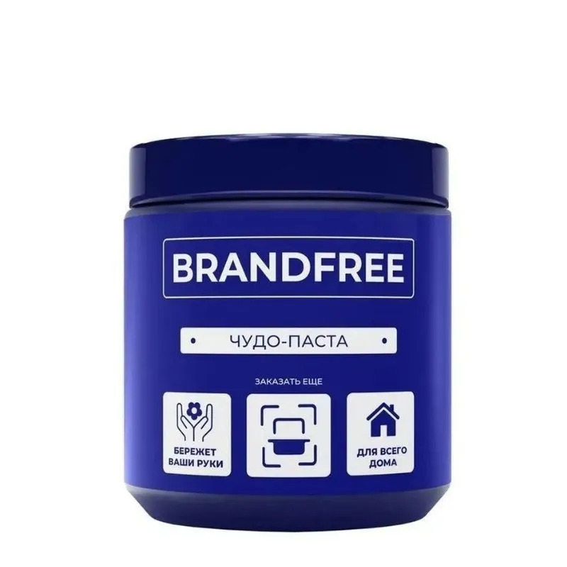 Универсальное моющее средство Brandfree - это чудо-паста для чистки любых металлических, эмалированных и стеклокерамических поверхностей, удаления налета в раковине, унитазе, ванне, очистки до блеска кафеля и загрязнений, мытья посуды и генеральной уборки всего дома. Универсальная очищающая паста предназначена для дома, дачи и гаража. Удаляет нестойкий жировой налет в микроволновке и на плите, а также известковый налет на стенах ванной, на кухне и даже грязь на белой подошве обуви! Розовая чистящая паста Бренд фри имеет натуральный состав с природным микроабразивом, мягкий деликатный аромат без резкого запаха.