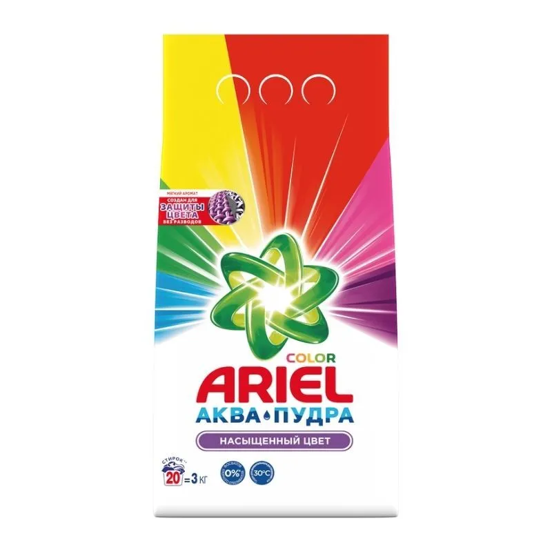 Стиральный порошок автомат Ariel Color для стиральной машины предназначен для стирки цветного и белого белья. Благодаря технологии Аквапудра, порошок для стирки Ariel Color растворяется, едва коснувшись воды, и моментально активируется: глубоко проникает в структуру волокон и удаляет сложные пятна, не давая загрязнениям въедаться. Ariel Color удаляет даже невидимые загрязнения, устраняя неприятные запахи и предотвращая изменение цвета ткани, в том числе на воротничках и манжетах. Преимущества Ariel Color: • Безупречное удаление пятен с первой стирки даже при 30°C; • Порошок быстро растворяется, не оставляя следов на одежде; • Сохраняет яркость цветных вещей; • Помогает справиться с застарелыми пятнами; • Не дает грязи и пятнам въедаться в структуру волокон; • 0% фосфатов и хлорного отбеливателя. Порошок Ariel Color доступен в больших упаковках 9 кг и 12 кг с более выгодной ценой за стирку. Для максимально удобного процесса стирки попробуйте также капсулы Ariel Color.