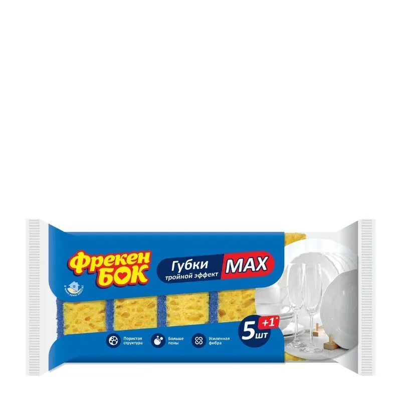 Губка кухонная Фрекен Бок Max 5, 1 шт — эффективно удаляет сложные загрязнения с посуды и кухонных поверхностей. Имеет плотную структуру и удобную форму для комфортного использования. Подходит для ежедневной уборки.