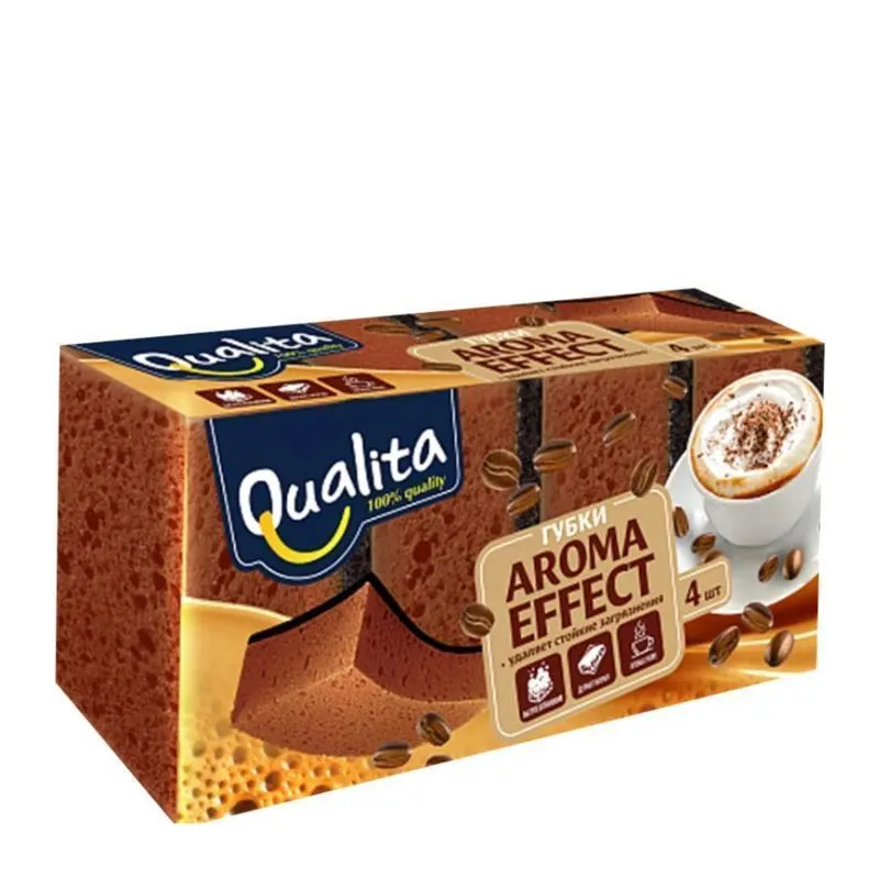 Удаляет стойкие загрязнения. Износоустойчивая фибра увеличивает срок службы. Приятный аромат кофе. Губка aroma effect из крупнопористого поролона повышенной плотности.