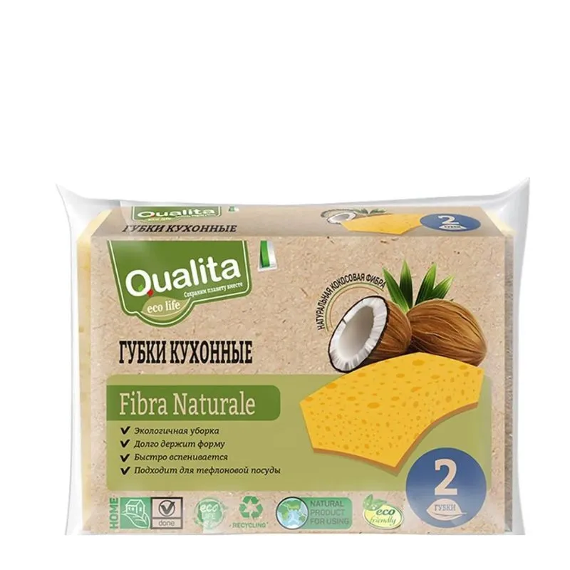 Губка из крупнопористого поролона повышенной плотности надолго сохраняет форму. Фибра с добавлением натуральных компонентов кокосового ореха подходит для деликатной поверхности.