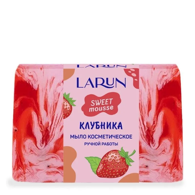 Мыло косметическое ручной работы Larun Клубника, 80 г, изготовлено с использованием натуральных ингредиентов и обладает сладким ароматом свежей клубники. Оно мягко очищает кожу, даря ей ощущение свежести и увлажненности. Благодаря своим питательным свойствам, мыло подходит для всех типов кожи, оставляя её мягкой, гладкой и нежной на ощупь.