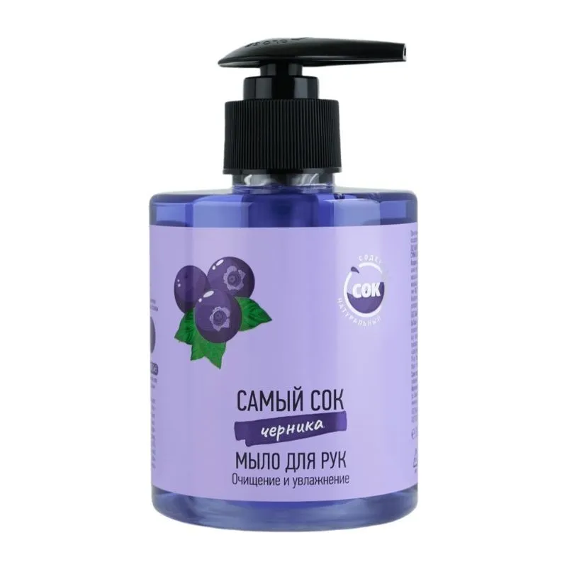 Ухаживающая формула жидкого мыла с натуральным соком черники и ниациномидом хорошо очищает, не повреждая липидный барьер, и защищает кожу от сухости.