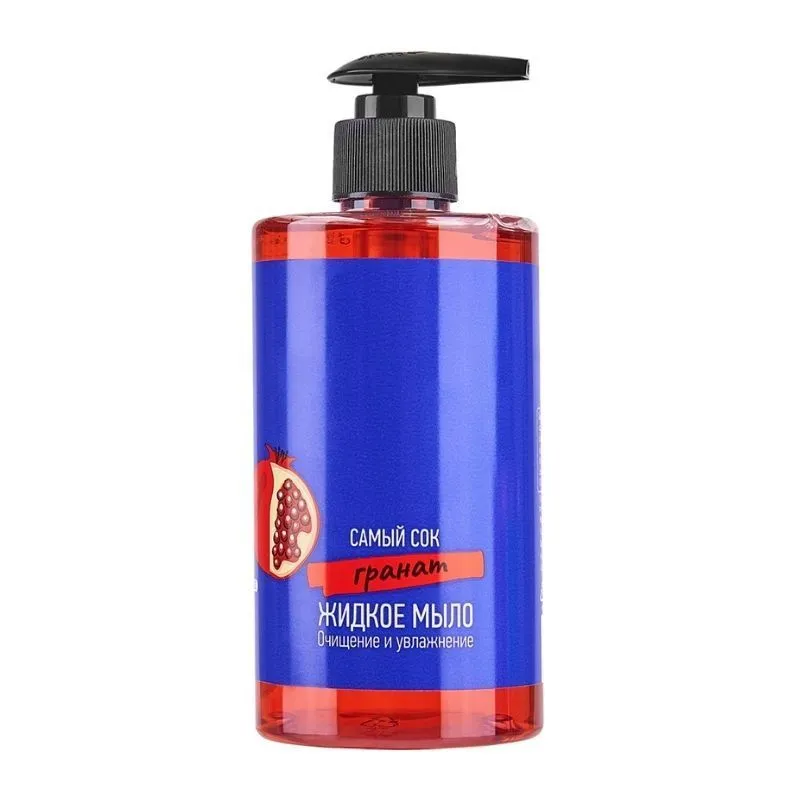 Ухаживающая формула жидкого мыла с натуральным гранатовым соком и ниациномидом хорошо очищает, не повреждая липидный барьер, и защищает кожу от сухости.