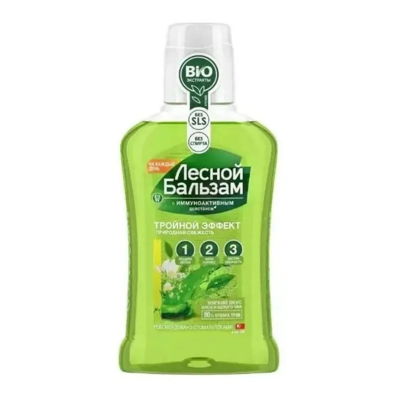 Ополаскиватель для десен и зубов Природная свежесть обладает приятным мягким вкусом, не вызывает чувство жжения и горечи в полости рта при полоскании.