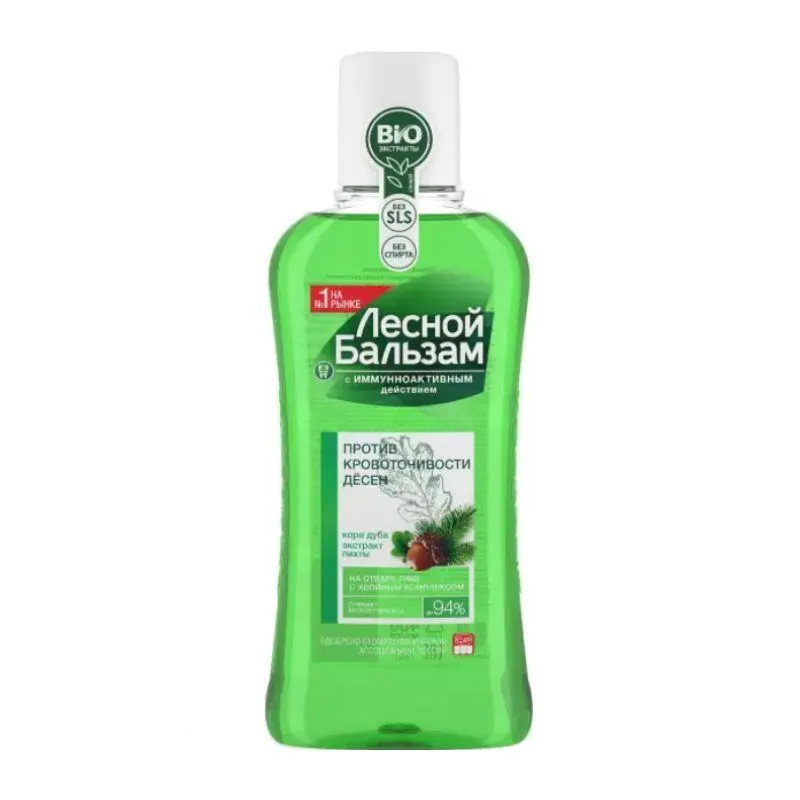 Добавь в свой ежедневный уход за полостью рта новый ополаскиватель для комплексной защиты зубов и десен – Лесной бальзам, в составе которого 98% ингредиентов натурального происхождения. Ополаскиватель для полости рта борется с первопричиной развития серьезных проблем полости рта – зубным налетом, который вызывает кариес и изменение цвета зубов, приводит к появлению зубного камня и кровоточивости десен, также подходит для гигиены полости рта при ношении брекетов или съемных зубных протезов. Он снижает скорость размножения кариесогенной микрофлоры и защищает от развития локального воспаления.