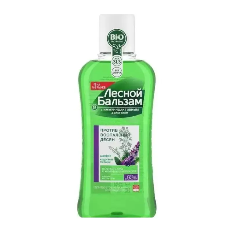 Добавь в свой ежедневный уход за полостью рта новый ополаскиватель для комплексной защиты зубов и десен – Лесной бальзам, в составе которого 98% ингредиентов натурального происхождения. Ополаскиватель для полости рта борется с первопричиной развития серьезных проблем полости рта – зубным налетом, который вызывает кариес и изменение цвета зубов, приводит к появлению зубного камня и кровоточивости десен, также подходит для гигиены полости рта при ношении брекетов или съемных зубных протезов. Он снижает скорость размножения кариесогенной микрофлоры и защищает от развития локального воспаления.