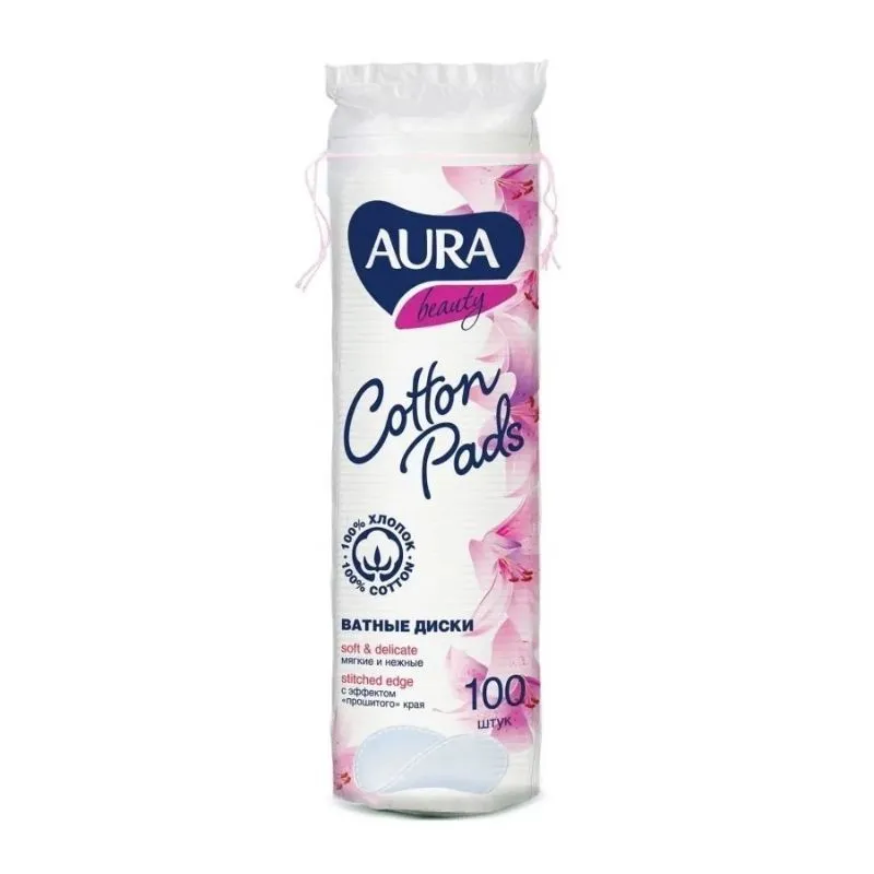 Мягкие и деликатные ватные диски AURA beauty производятся из 100% хлопка. Благодаря прошитому краю, диски не расслаиваются и не оставляют ворсинок на коже.