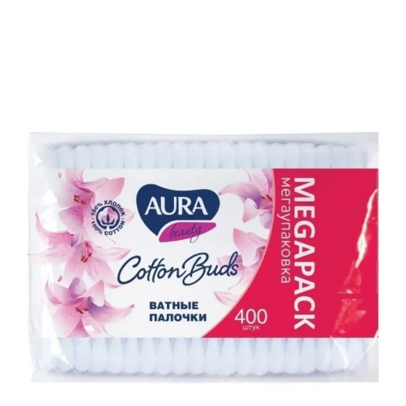 Ватные палочки Aura Beauty с автостяжкой, 400 шт