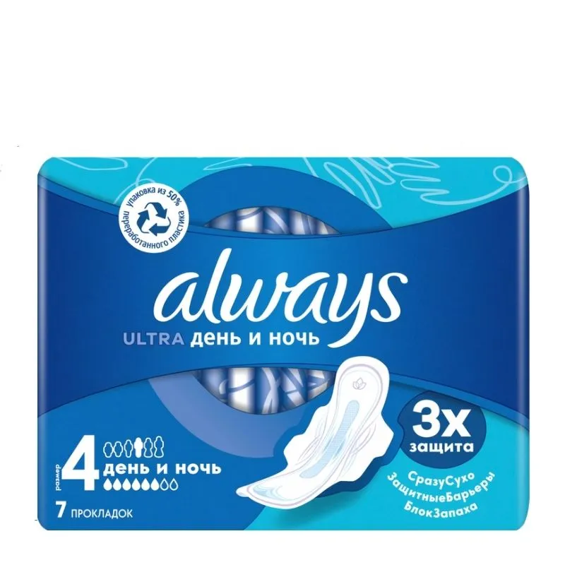 Тройная защита от Always — не соглашайтесь на меньшее: в Always Ultra Day & Night (Размер 4) с крылышками используется новейшая технология для создания многофункциональной гигиенической прокладки с 3 элементами защиты в дневное и ночное время. Система «Сразу сухо» впитывает влагу за считаные секунды и не дает ей соприкасаться с кожей. Технология «Защитные барьеры» удерживает жидкость, предотвращая протекания. Технология «Блок запаха» нейтрализует неприятные запахи, придавая ощущение свежести и чистоты во время менструации. С Always Ultra вы можете чувствовать себя уверенно весь день. Тройная защита от Always — не соглашайтесь на меньшее. Формула дерматологически одобрена Ассоциацией здоровья кожи (Skin Health Alliance). Попробуйте Always Ultra Secure Night Extra с крылышками — лучшие гигиенические прокладки Always для защиты в ночное время. Обеспечьте себе наилучшую защиту с помощью Always My Fit — специальной системы определения размера.