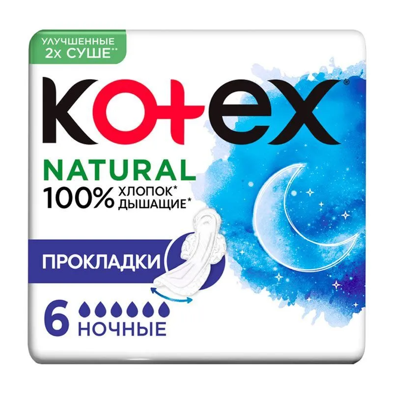 Гигиенические прокладки Kotex (Котекс) Natural Night - гипоаллергенные, комфортные, надежные. Все, что нужно для спокойного отдыха.