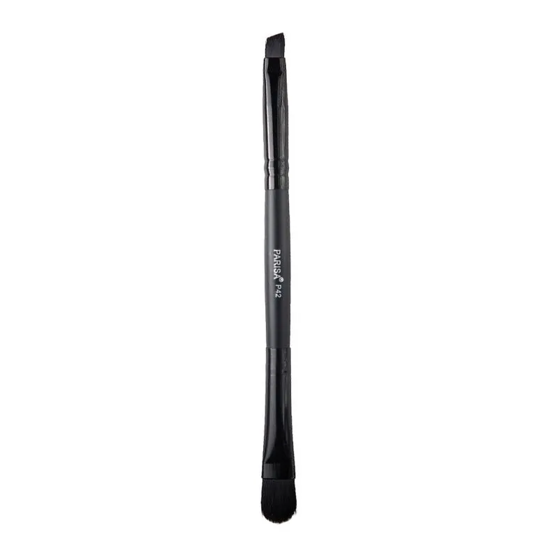Удобная двусторонняя кисть P-42 из синтетического ворса предназначена для профессионального макияжа глаз. С одной стороны она имеет плоскую ворсовую рабочую часть, посредством которой можно аккуратно нанести тени, красиво оформив переход от внутреннего угла глаза к внешнему, а также подчеркнуть брови. Другая рабочая сторона кисти имеет закругленный срез ворса и позволяет выполнить идеальную растушевку, мягко скользя по складкам верхнего века.