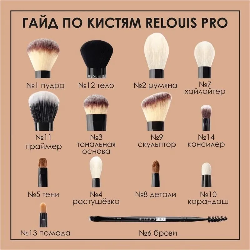 Классический косой срез кисти делает нанесение пудры-скульптора и хайлайтера Relouis PRO особенно удобным.