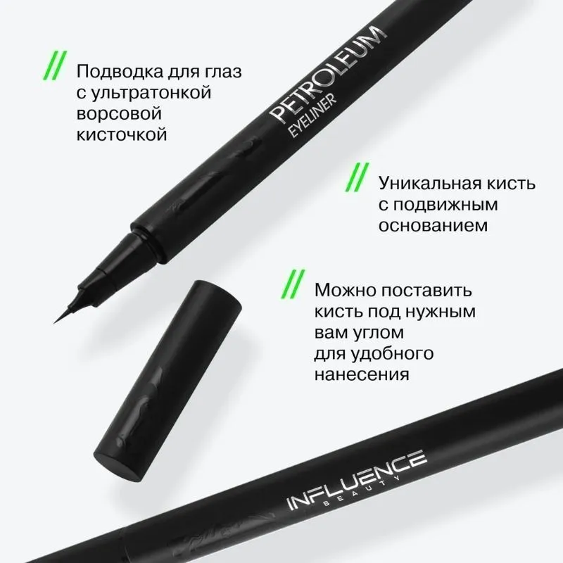 Эта классическая, на первый взгляд, черная подводка имеет нестандартное решение: уникальную кисть с подвижным основанием: «умный» механизм у основания кисточки позволит поставить ее под нужным вам углом для максимально комфортного творчества. С подводкой PETROLEUM создание насыщенных стрелок проходит безошибочно и быстрее обычного. А ваш выразительный взгляд будет притягивать внимание окружающих, готовых утонуть и раствориться в ваших глазах, — ведь такова физика черного.