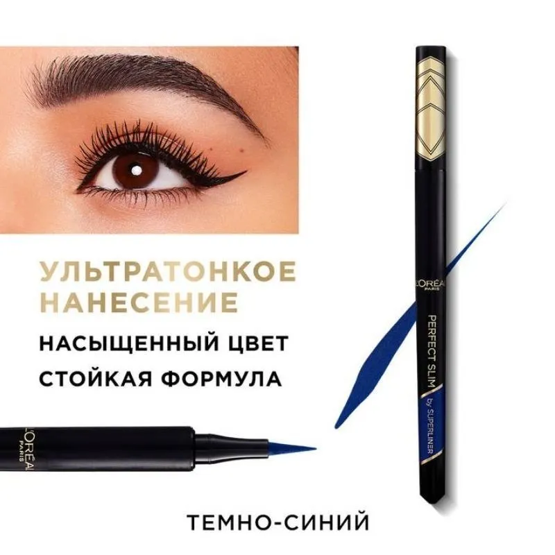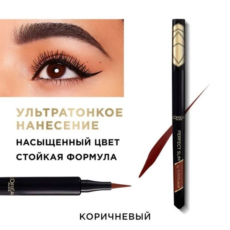 Суперлайнер "Perfect Slim": жидкая классическая подводка для макияжа глаз от L'Oreal Paris - идеально тонкие линии и стрелки одним движением. Благодаря специальной зоне захвата нанесение стало более контролируемым и простым. А ультратонкий фетровый аппликатор с легкостью позволяет выполнять четкие линии любой толщины и формы. Сатиновая формула, насыщенная ультраинтенсивными пигментами быстро фиксируется, не тускнеет и не растекается на протяжении всего дня. Твои линии, твои правила! 1. Создает линию необходимой интенсивности. 2. Наносится с максимальной точностью. 3. Легкое нанесение линии одним движением руки. Понравилась подводка Hyper Precise от Maybelline NY? Попробуй легендарную подводку от L'Oreal Paris - Superliner Perfect Slim