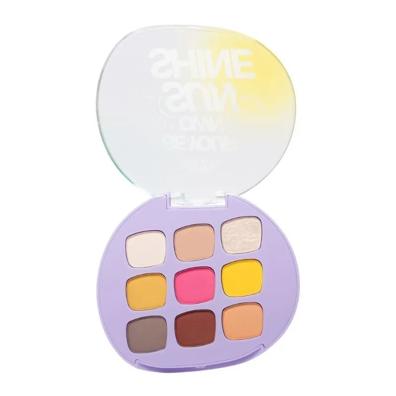 Палетка теней BE YOUR OWN SUNSHINE — твоя аффирмация для удачного дня. Макияж с ней настроит тебя на позитивные вибрации. Пришло время стать солнышком и подчеркнуть свой внутренний свет. BE YOUR OWN SUNSHINE — это восемь матовых и один сияющий оттенок, с которыми ты сделаешь как ежедневный, так и акцентный трендовый макияж. Матовые оттенки отлично растушевываются и передают цвет, а сияющие тона с полукремовой текстурой равномерно наносятся как кистью, так и пальчиком.