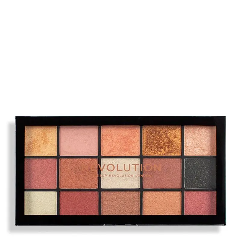 Палетка теней для век Revolution Reloaded Palette Affection. 15 интенсивных оттенков, шелковистых и легко смешивающихся пигментов, Affection это смесь теплых тонов позолоты и бордо, а также глубокий блестящий черный добавляющий драматизма.
