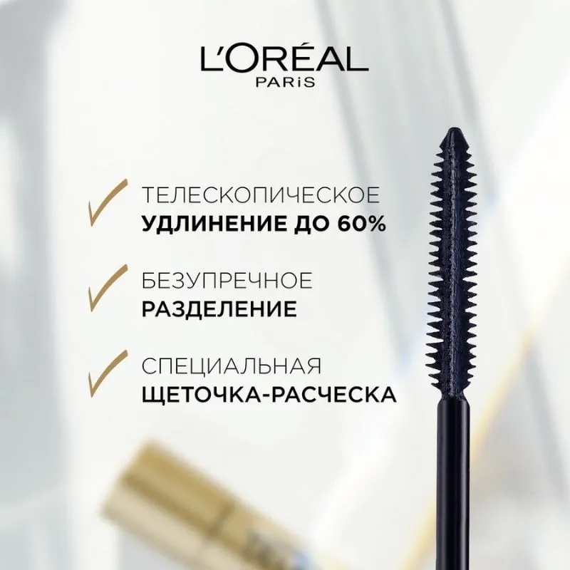 Легендарная тушь TELESCOPIC от L'Oréal Paris меняет представления о длине. Тушь №1 среди удлиняющих тушей. Щеточка-расческа разделяет и удлиняет ресницы до 60%. Формула черного цвета обеспечивает беспрецедентно черное покрытие. В состав формулы входит пчелиный воск, молекулы которого придают объем и пластичность ресницам, а воск карнауба укрепляет ресницы и увеличивает стойкость туши. Тушь дарит ресницам насыщенный глубокий черный цвет. Телескопическое удлинение и разделение ваших ресниц. Покоряй взглядом любую высоту, ведь ты этого достойна!