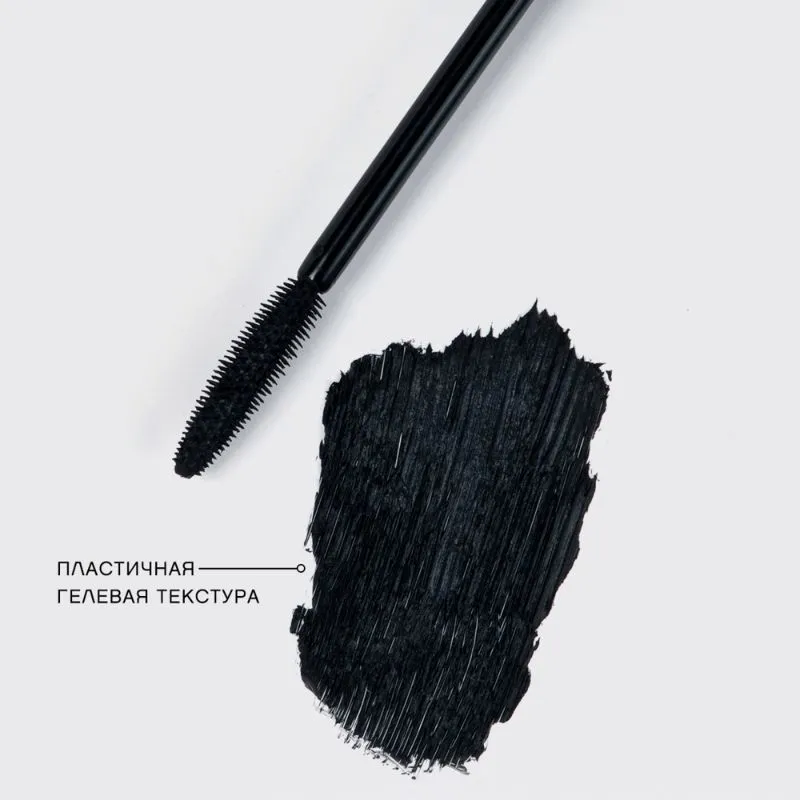 Щеточка сделана из материала, который не теряет форму в течение всего срока использования, а пластичная масса туши содержит натуральные воски, которые обеспечивают ресницам уход и защиту и не дают туши осыпаться.