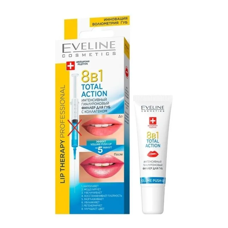 Одной из наиболее популярных на сегодня косметических процедур является увеличение объема губ с помощью инъекций с гиалуроновой кислотой. Данная процедура эффективна, но к сожалению, не всегда безопасна. Прекрасной альтернативой гиалуроновым инъекциям станет разработка польских специалистов — филлер для губ интенсивный гиалуроновый Eveline Cosmetics Total Action 8 в 1. Он поможет увеличить объем губ, избежав при этом побочных эффектов.