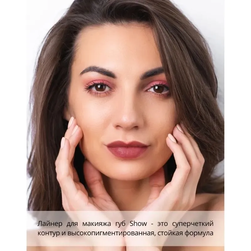 Новинка сезона - лайнер для макияжа губ "Show" — это суперчеткий контур, высоко пигментированная и стойкая формула делают его незаменимым помощником в создании идеального макияжа.