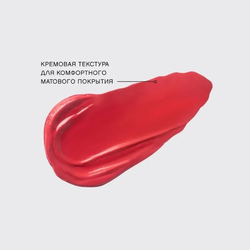 Она создает идеальное бархатное покрытие, а также делает губы чувственными, выразительными и визуально более объемными. Кремовая высокопигментированная текстура с улучшенной формулой для комфортного матового финиша без липкости быстро фиксируется, не сушит и не стягивает кожу. Помада ложится, как вуаль, равномерно распределяется и оставляет насыщенный цвет с первого нанесения.