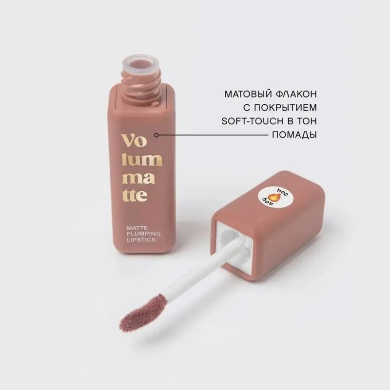 VOLUMMATTE упакована в лаконичный матовый флакон с покрытием soft-touch в тон помады. Благодаря мягкому аппликатору изогнутой формы удобно детально прокрашивать контур губ без использования карандаша.