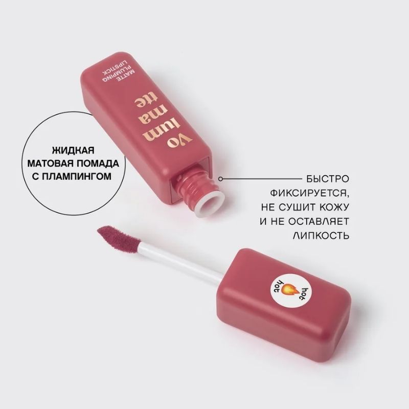 VOLUMMATTE — стойкая жидкая помада с матовым финишем и согревающим плампинг-эффектом в восьми оттенках от классического нюдового до насыщенного винного.