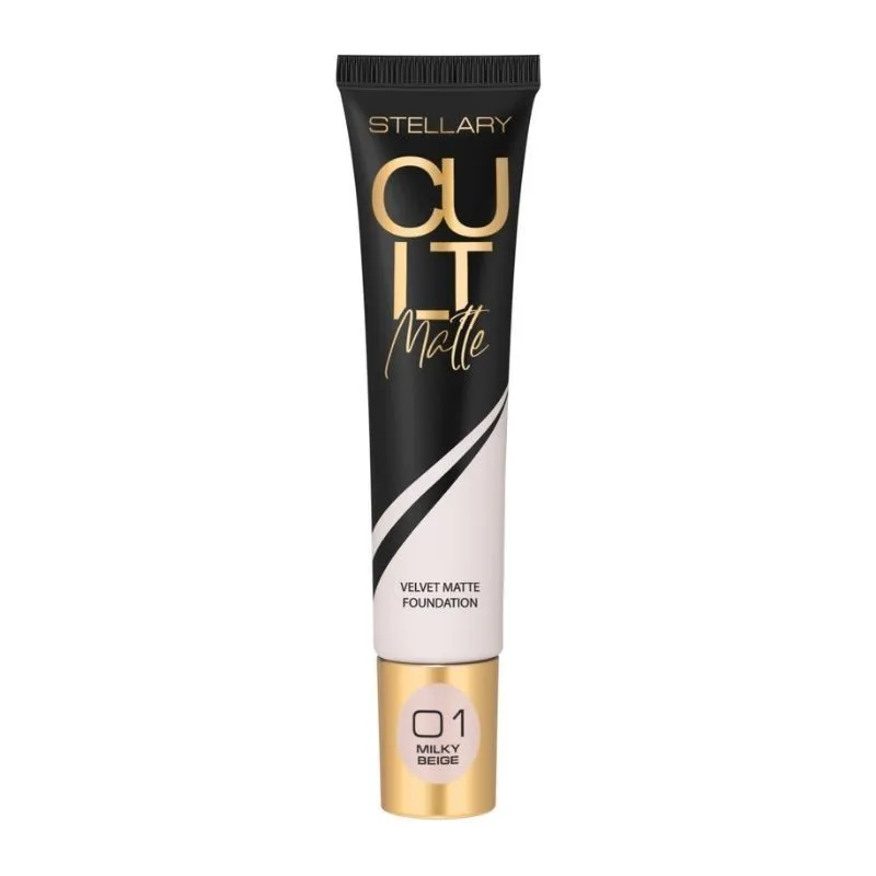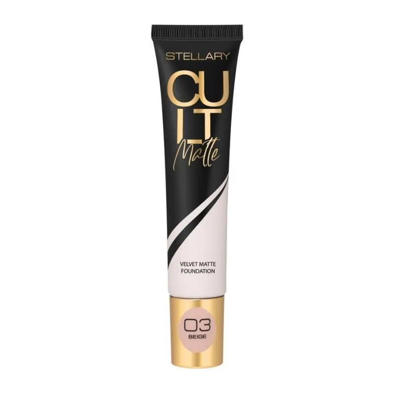 СULT MATTE представлен в четырех оттенках: 01 молочный бежевый, 02 теплый бежевый, 03 бежевый, 04 темно-бежевый. Тональный крем упакован в мягкую тубу с крышкой с запоминающимся дизайном с золотыми глянцевыми деталями.