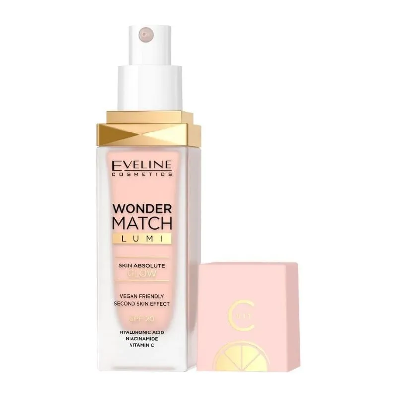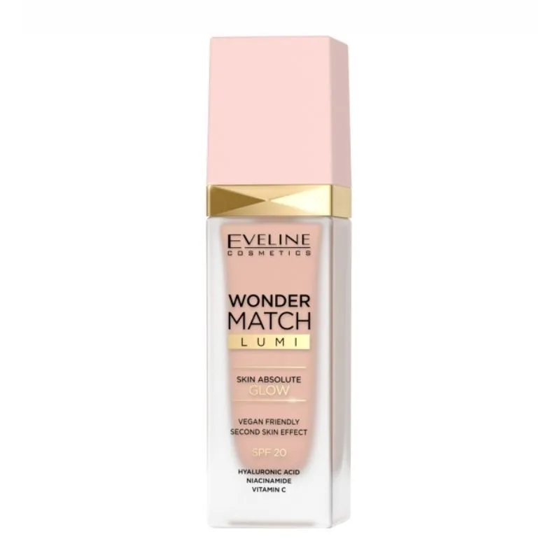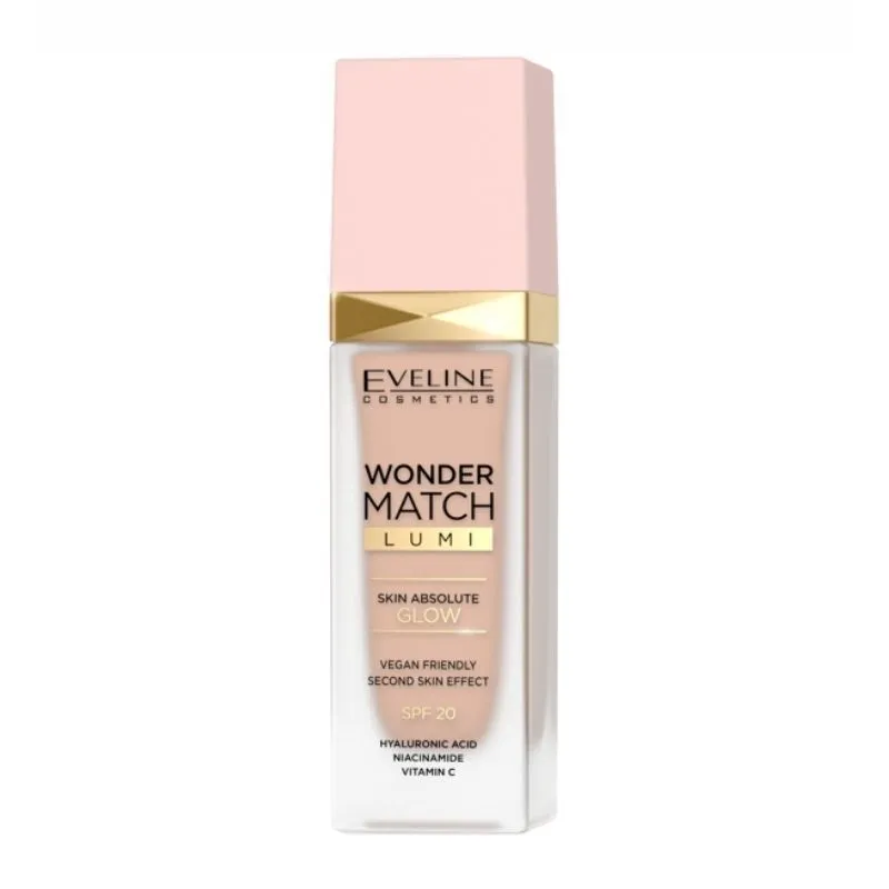 Тональная основа с эффектом сияния WONDER MATCH LUMI обеспечивает эффект многомерного сияния. Специально разработанная формула тонального крема прекрасно ухаживает за кожей и обеспечивает безупречный макияж. Интенсивно увлажняет и питает кожу. Формула, обогащенная ВИТАМИНОМ C, придает коже сияние, ГИАЛУРОНОВАЯ КИСЛОТА обеспечивает ей соответствующее увлажнение, a ЭКСТРАКТ ФРАНЦУЗСКОЙЙ РОЗЫ разглаживает, питает кожу, а также сокращает количество морщин. Содержащиеся в формуле активные компоненты - НИАЦИНАМИД и ЭКСТРАКТ СЕМЯН МОРИНГИ улучшают цвет и структуру кожи. SPF 20.