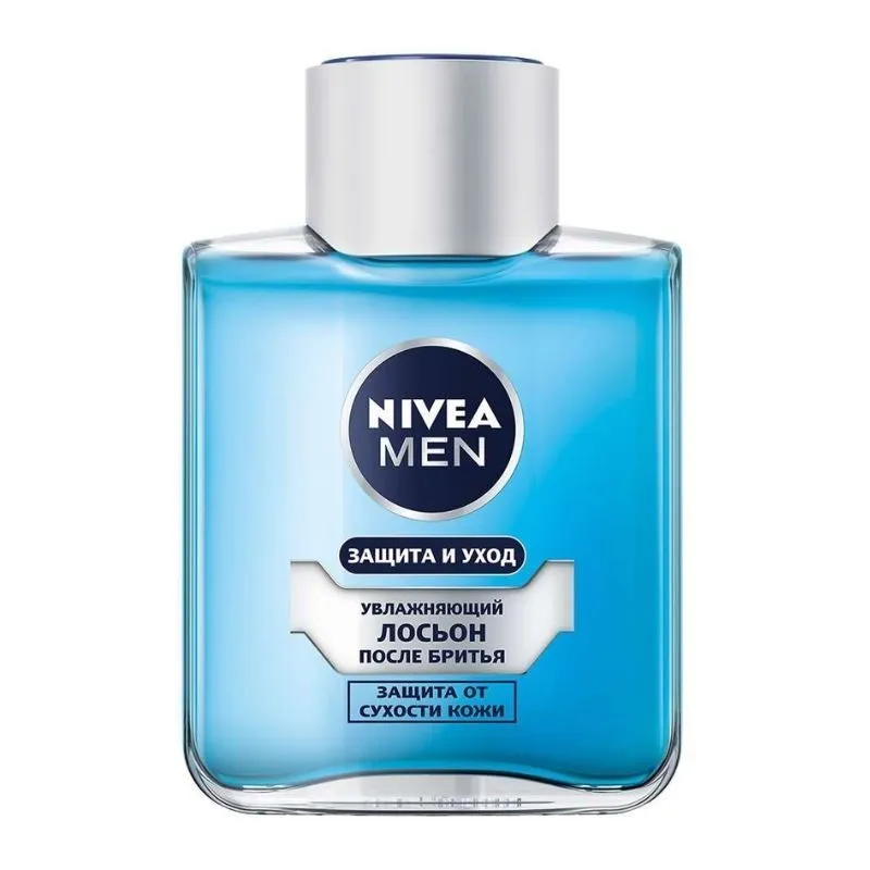 После бритья раздраженную кожу необходимо успокоить и снять все раздражения. В этом поможет увлажняющий лосьон ""Защита и уход"" немецкого бренда Nivea Men. Он подходит для ухода за всеми типами кожи. После его применения кожный покров станет мягким. Благодаря активным компонентам в составе увлажняющего лосьона после бритья Nivea Men Защита и уход увлажнит и избавит от чувства сухости и стянутости. Алоэ вера, активные увлажняющие компоненты и витамин Е позволят эпидермису оставаться гладким и эластичным.