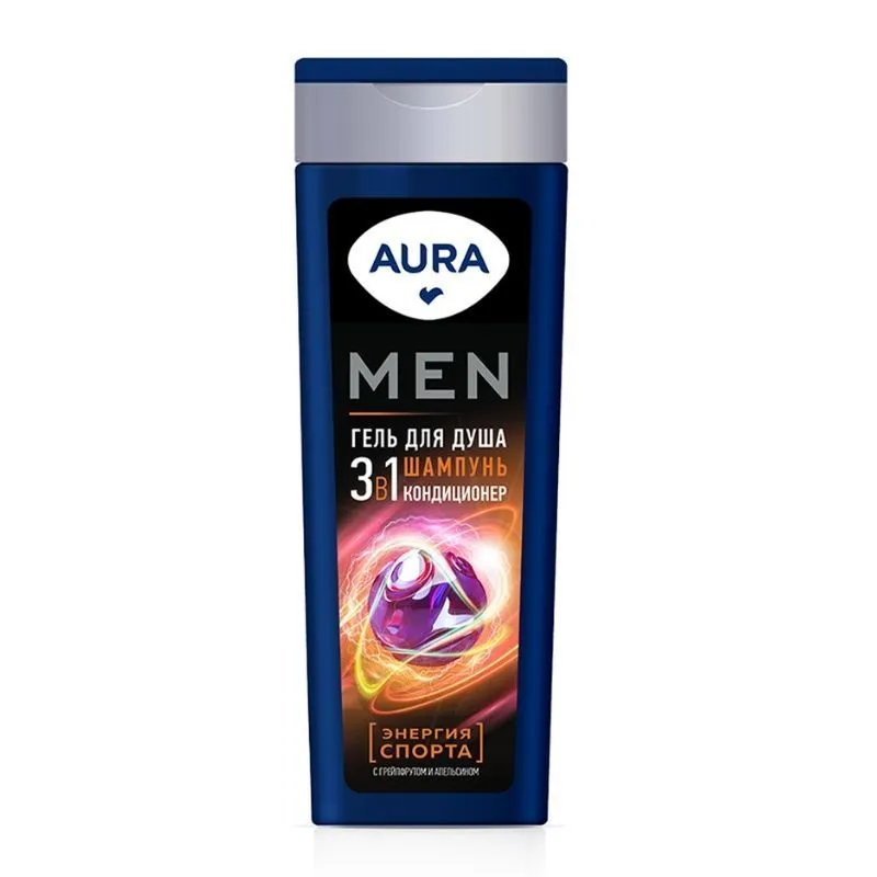 Универсальная формула геля для душа 3в1 aura men обеспечит глубокое очищение и уход за кожей тела и волосами.