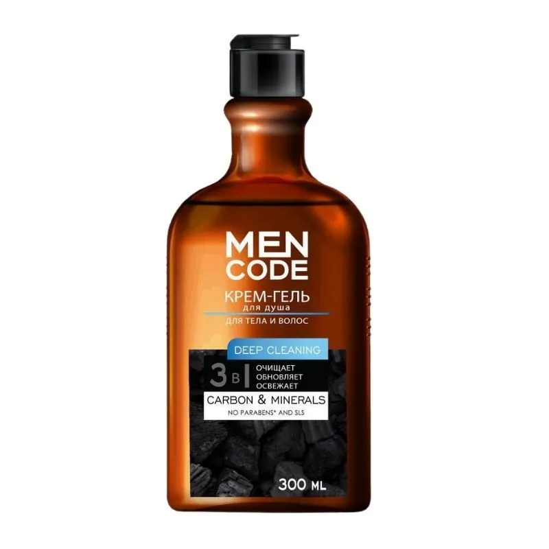 Крем-гель для душа MEN CODE DEEP CLEANING с экстрактами угля и минералов интенсивно очищает и обновляет мужскую кожу, придавая чувство свежести, и обеспечивает ежедневный уход. Экстракт древесного угля выводит токсины и нормализует pH-баланс кожи. Морские минералы насыщают кожу кислородом и питательными веществами, а также увлажняют и освежают кожу. Не содержит парабены и SLS.