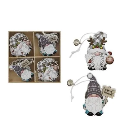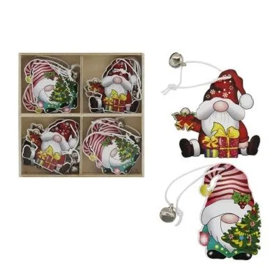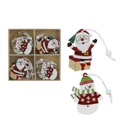 Украшения Дед Мороз и Снеговик 12шт деревянные 6см