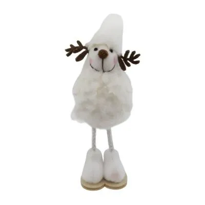 Украшение Олень-девочка в шарфе красный+бежевый 7х5х17см