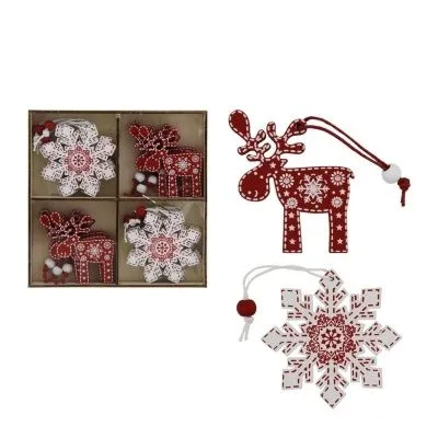 Украшения Олень и Снежинка 12шт деревянные красный+белый 6см