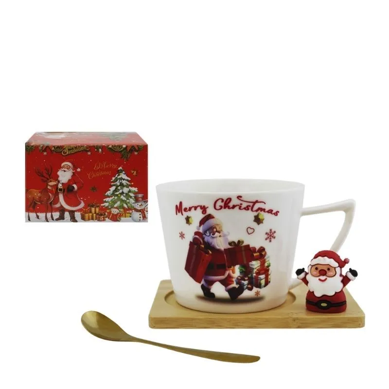 Кружка "Санта с подарками" с ложкой на подставке в подарочной коробке
