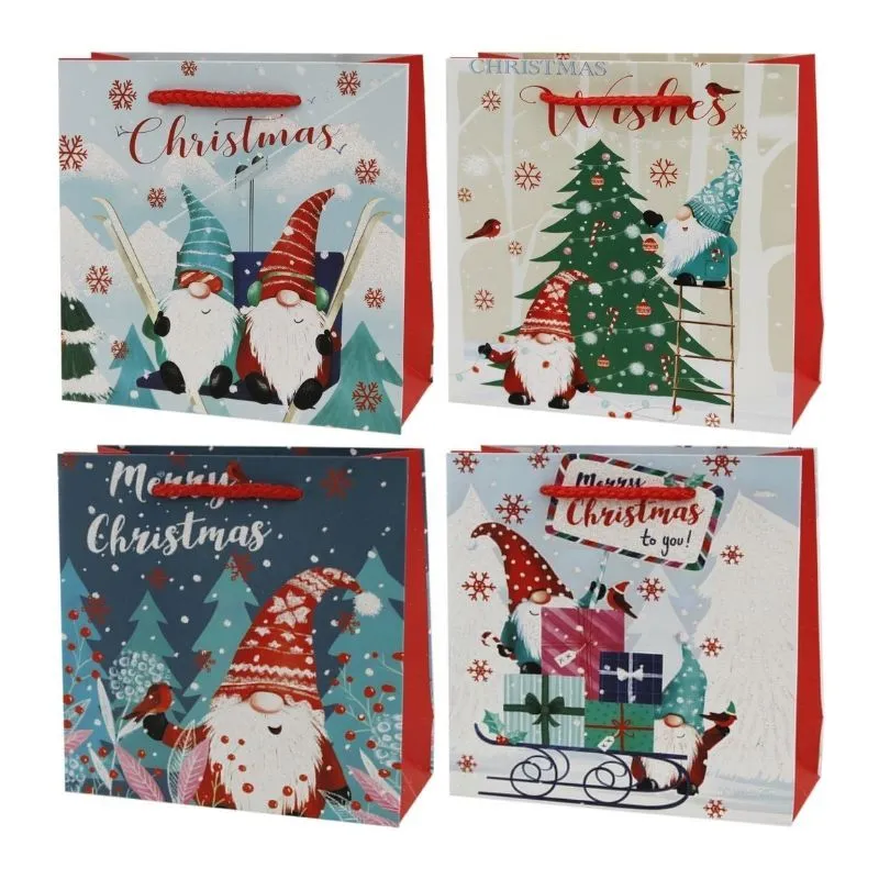 Пакет подарочный "Новогодние Гномы" Размер: 14,5*15*6 см Материал: плотная бумага, текстиль
